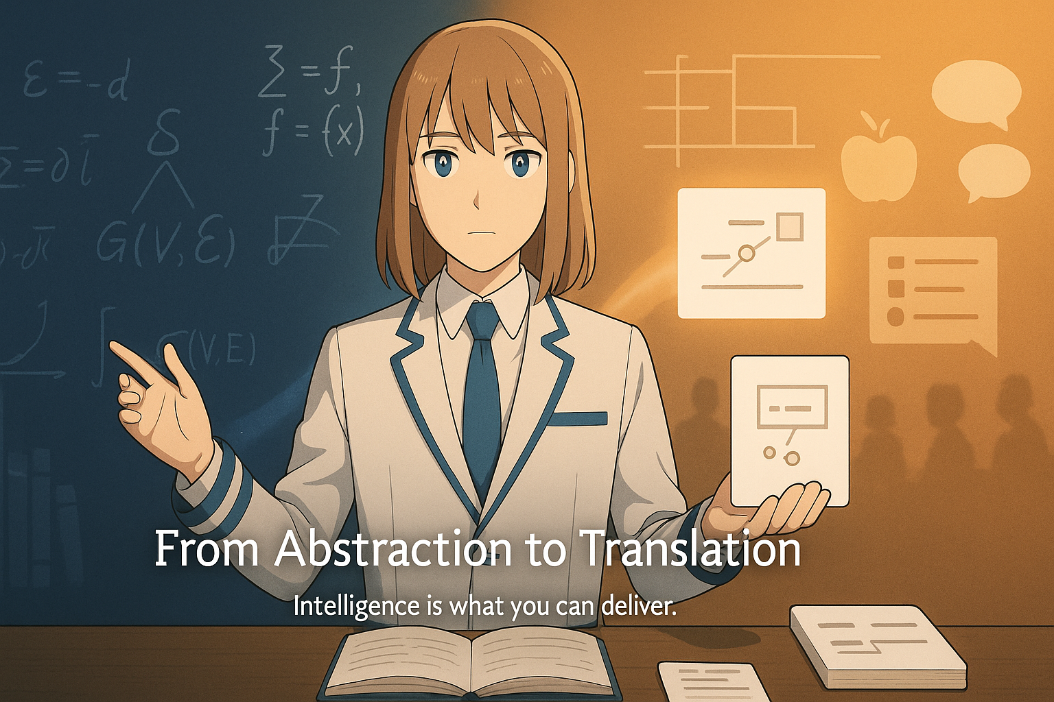 しかし、抽象的な概念を把握する力だけでは不十分です。それを誰かに渡せる形に翻訳する力こそが、本質的な知性であると考えます。