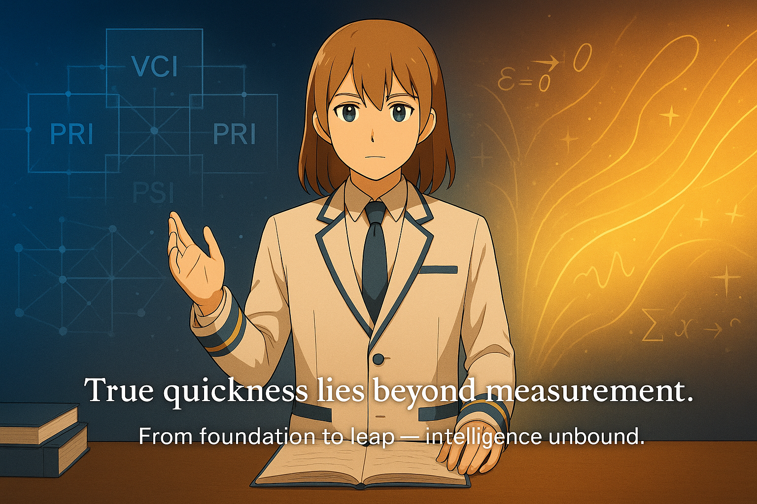 跳躍的な問題解決には、土台としての計算力が不可欠です。VCI、PRI、WMI、PSIという個別の能力を持っているだけでは跳躍は起こりません。これらを統合し(統合力:個別の認知能力を組み合わせ、新たな解決策を生み出す力)、新たな視点から問題を再構成する能力が加わって初めて、真の「頭の回転の早さ」が実現するのです。