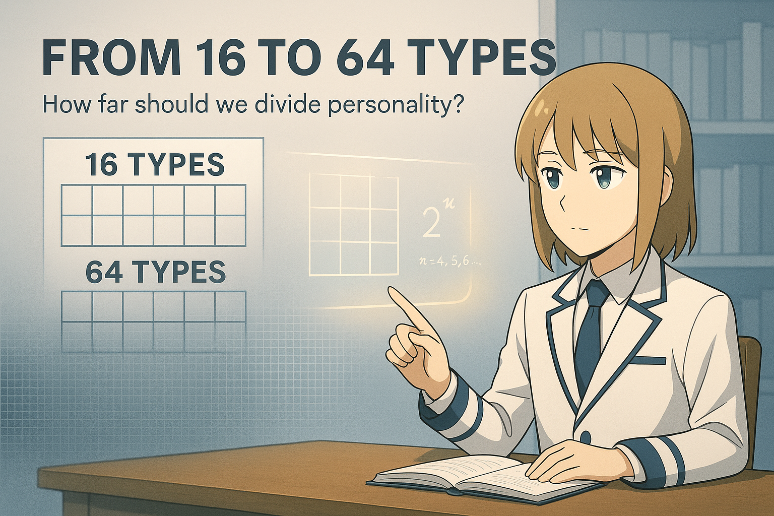 公式の性格類型論では16タイプまでが理論化されており、一定の学術的背景があります。しかし、64タイプにはそのような学術的裏付けがありません。あくまでエンタメ的な拡張です。
