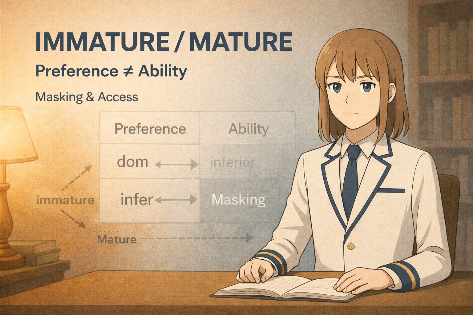 本記事の目的は、Isabel Briggs Myersの原典から「未熟/成熟」の定義を演繹的に導出し、SNSでの観察によってその妥当性を検証し、最終的に明確な定義を確立することです。これは、16タイプ理論のコミュニティに一つの知的規律を提案する試みでもあります。